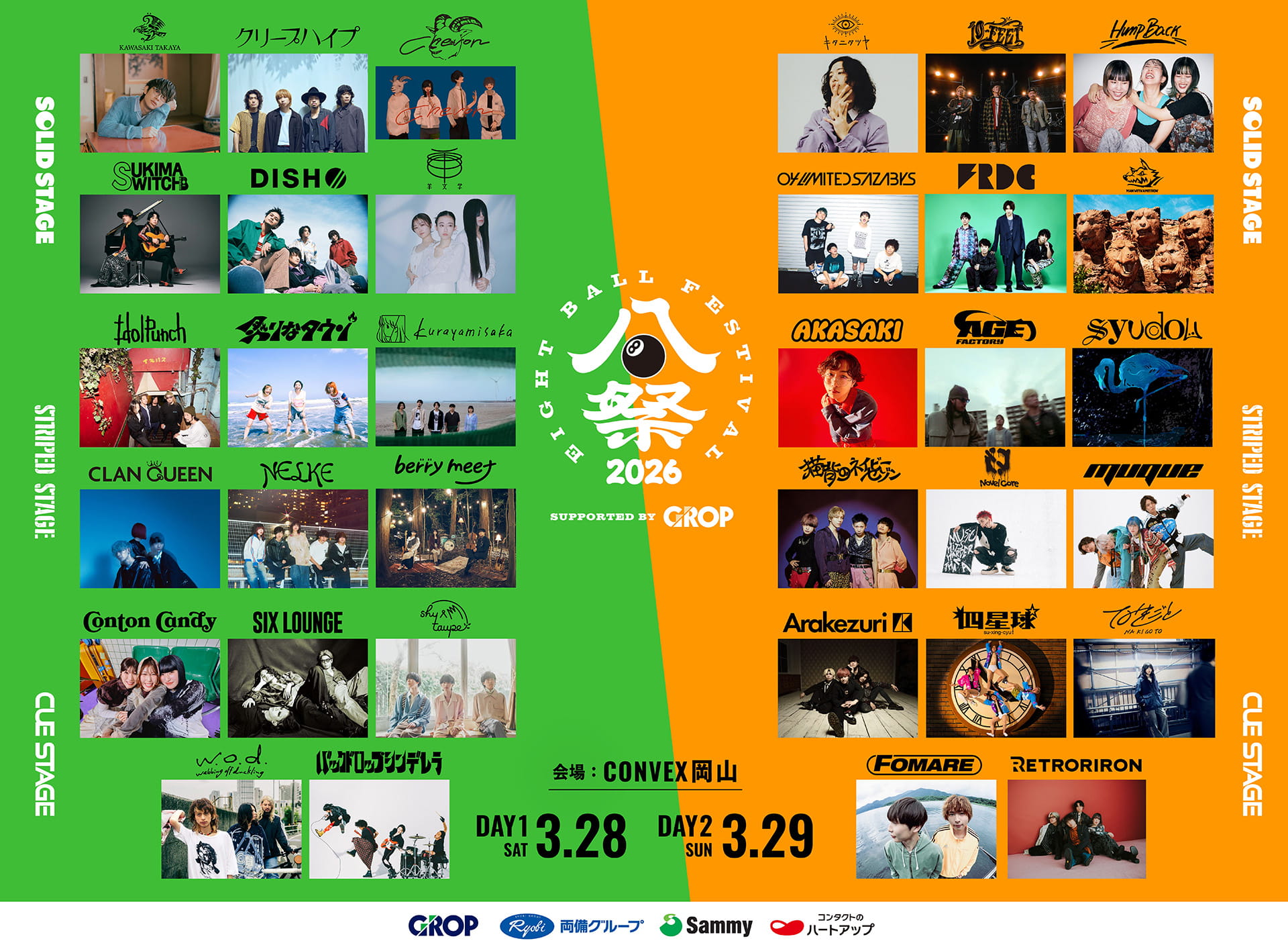 「EIGHT BALL FESTIVAL 2026 supported by GROP」出演アーティスト全34組・日程発表!