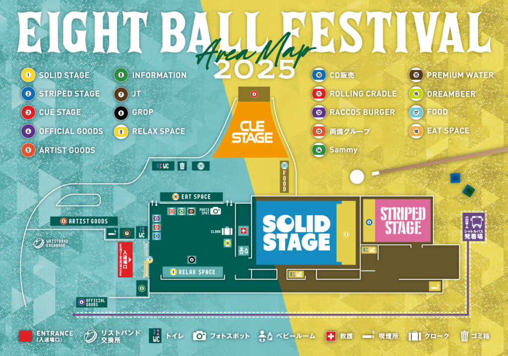 11:00 LIVE AREA入場開始・SOLID STAGE・STRIPED STAGE・CUE STAGEその他各エリアの開始時間等詳細はエリアガイドのページをご覧ください。──────────